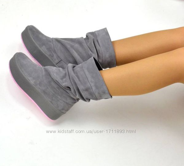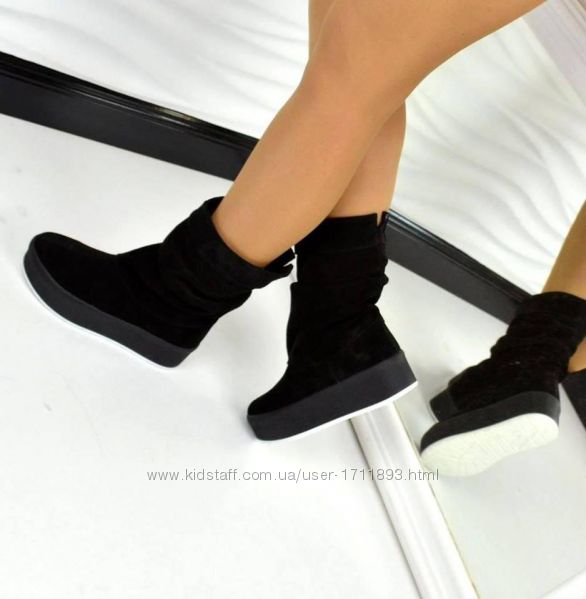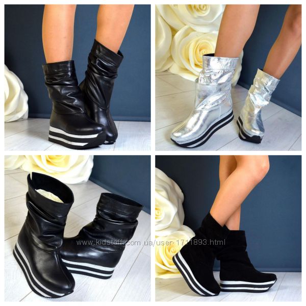 Подробное описание: Женские натуральные кожаные замшевые полу сапоги на танкетке платформе кожа