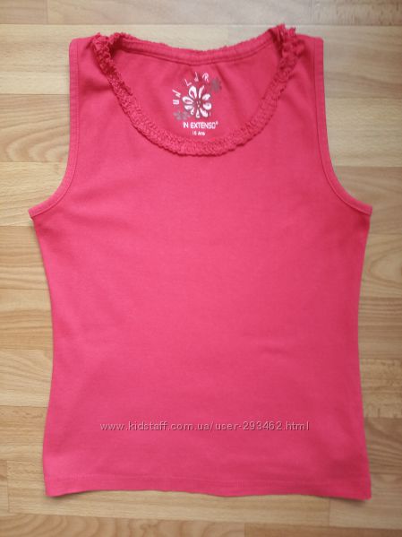 Фото 3 - летняя майка In extenso на р.134-140 б/у в отличном состоянии. Цвет в реале алый, на фото немного высветленный. Замеры: длина от верха плеча 48 см, ПОГ 34 см и ещё тянется. Цена 50 грн.