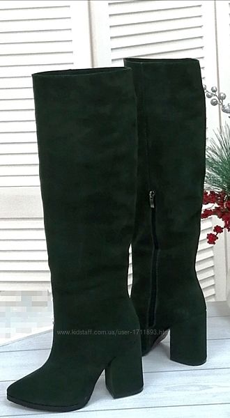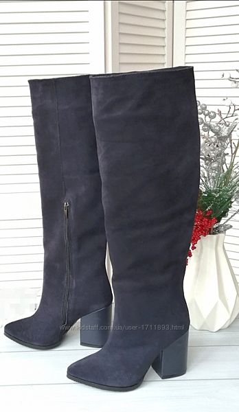 Женские натуральные кожаные замшевые высокие сапоги на высоком каблуке кожа