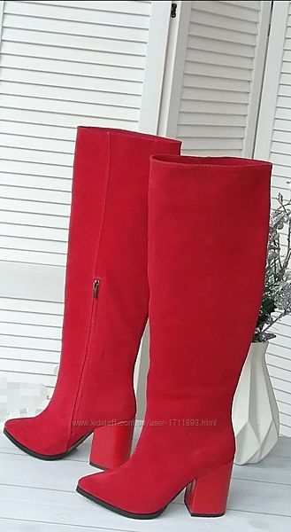 Подробное описание: Женские натуральные кожаные замшевые высокие сапоги на высоком каблуке кожа