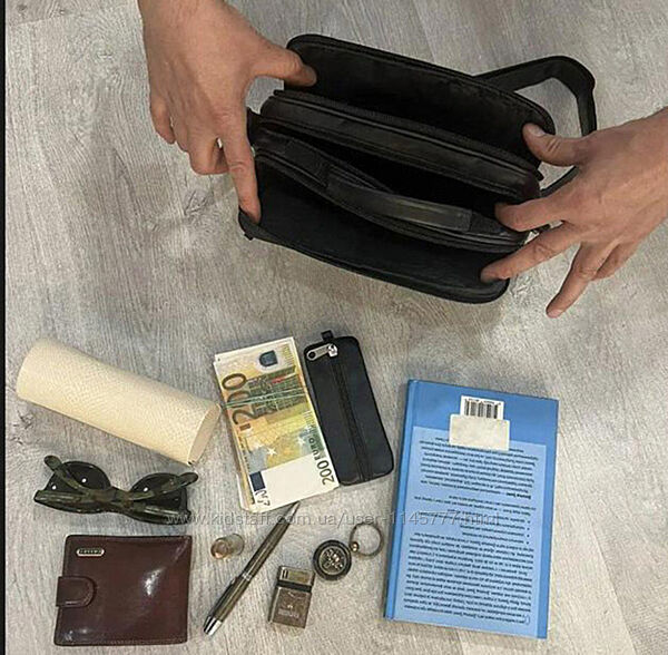 Подробное описание: Чоловіча шкіряна сумка через плече 2026-1es чорна барсетка 5 відділень