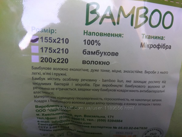 Подробное описание: Ковдра фабрики ОДА Бамбук 450 м. кв.