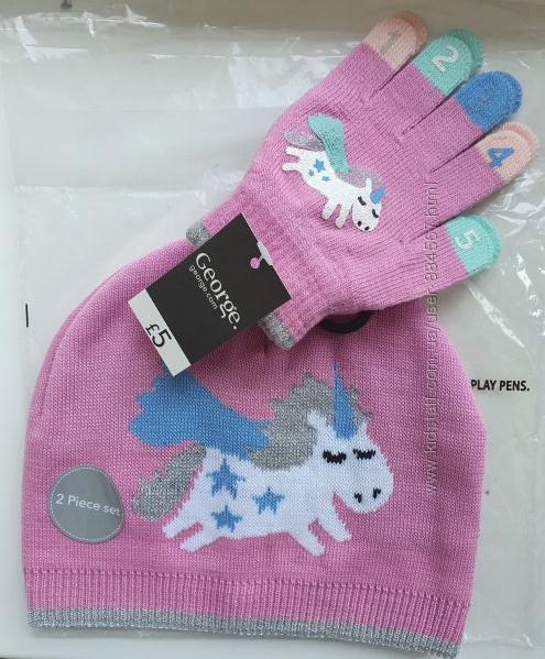 Демисезонный набор для девочки из Англии - шапка с перчатками George