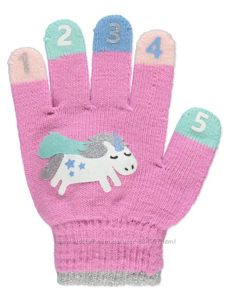 Красивые розовые перчатки с разноцветными цифрами на пальчиках для того, ч тобы научить девочку считать.
