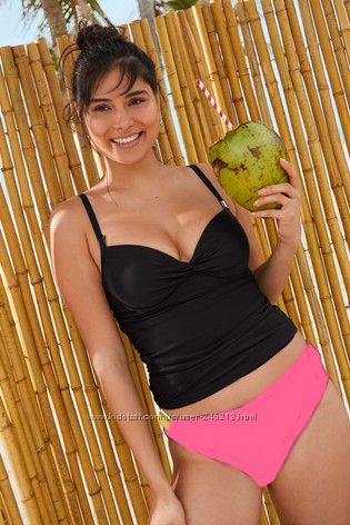 Английский танкини F&F с отличным Push Up.Халтер , завязка через шею , трусики бикини кораллового цвета .