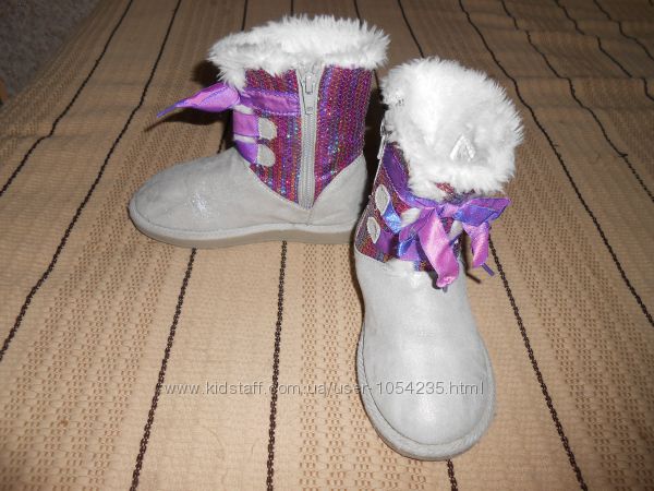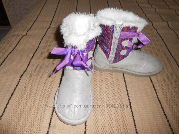 Продам теплые сапожки-угги для девочки 28 (11) размера. Сапожки "Striderite": по подошве 19,5 см., по стельке где-то 18 см. Застегиваются по бокам на змейках, верх сапожек полностью в блестящих пайеточках, впереди шнуровка с атласными бантиками, внутри - меховой утеплитель. Цена: 200 грн.Пересылаю Укрпочтой или Новой почтой, обмена и возврата нет.Другие объявления продавца