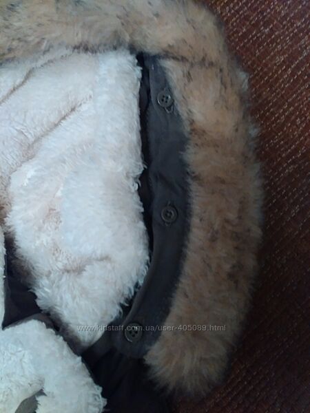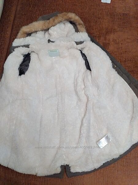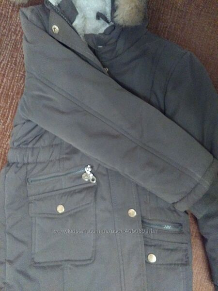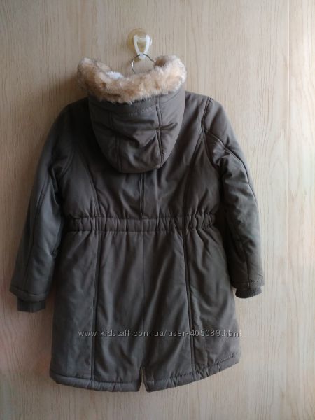 Парка французского бренда Vertbaudet. Размер : 126см./8лет Сезон - холодная осень - еврозима. Цвет : хаки. Замеры: длина от верхней точки плеча - 62 см., пог - 38 см., длина рукава с трикотажным довязом - 48 см. Застёжка - молния, с защитой подбородка. Молния прикрыта планкой на кнопках. Капюшон пришит, мех на капюшоне отстёгивается. По талии есть утяжка. Подкладка из шерпы. Фурнитура "под золото", с оттиском названия бренда. Кнопки, молнии -всё на месте (не поцарапаны) , всё работает. В отличном состоянии. Нюансов нет. Без возврата.