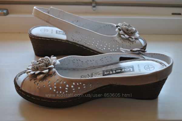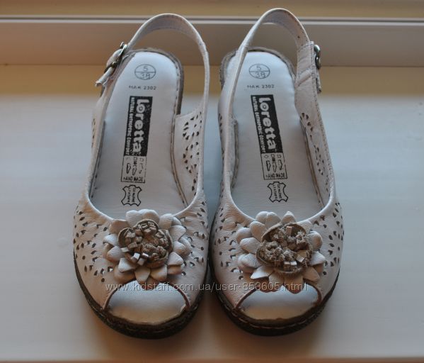 Босоножки Loretta р. 38 длина стельки 24 см, ширина 8 см.Снаружи и внутри натуральная кожа. Мягкая стелька.