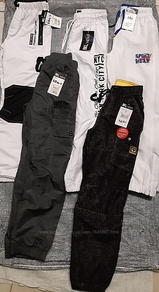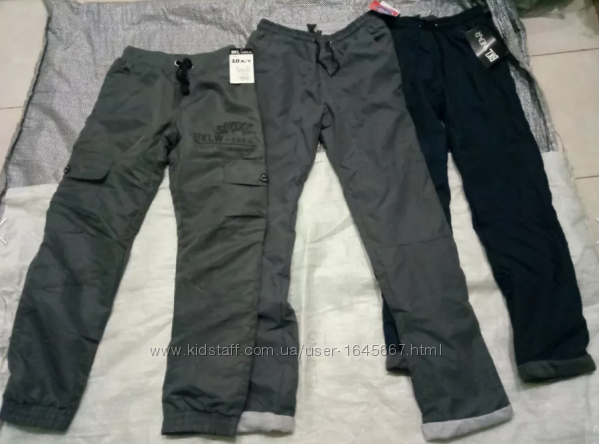 Привезенные из Германии все сезонные непромокаемые спортивные штаны на х/б трикотажной подкладке, резинка по талии + шнурок, внизу на штанинах резинки и молнии. Размеры на 8, 10, 12, 14, 16 лет.цвета белый, серый, красный, бордовый, синий. Цена меняется в зависимости от модели.8 лет цена 220 грн