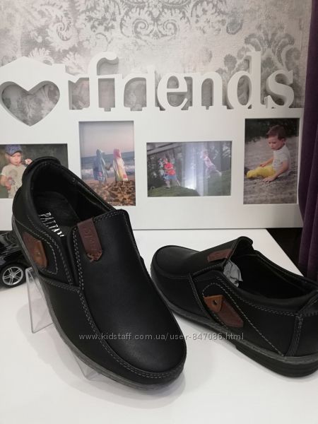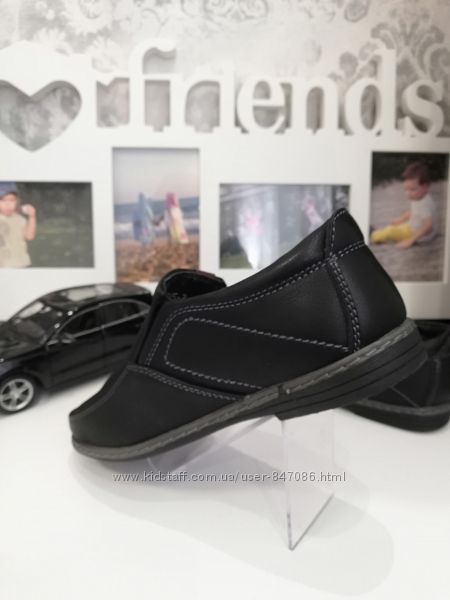 Отличные классические туфли мокасины для мальчишек. Легкие и удобные. Хорошо фиксируют ножку. Идеальный вариант для школы и садика. Отлично сочетаются как с классическими брюками так и с джинсами.Верх - качественный кожзам, кожаная стелька с супинатором.27 р = 19,5 см