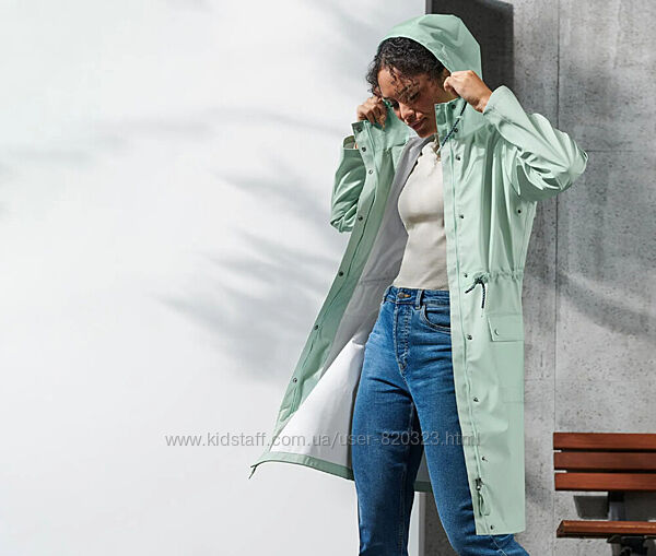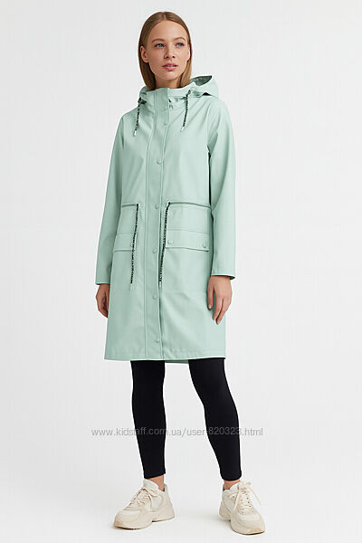 Жіноча парка-дощовик із заокругленим краєм спереду та ззаду для створення жіночного силуету.