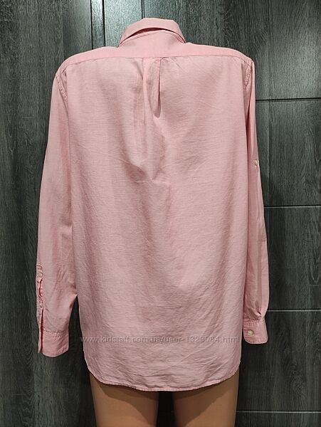Обалденная розовая рубашка всемирно известного бренда Gap. Сделана во Вьетнаме. Состав - 86% хлопок и 14% лён. Состояние отличное.Размер М, внимательно смотрите замеры: