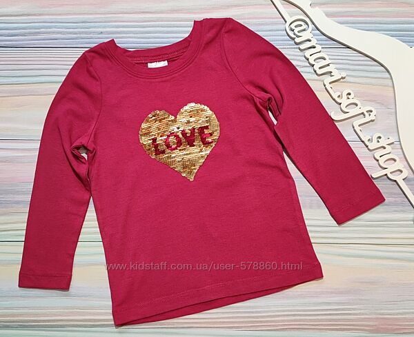 Рожевий реглан з серцем з пайєток перевертнів від Avon у розмірі 3-4 роки (с3).Колір не яскравий, приглушений.