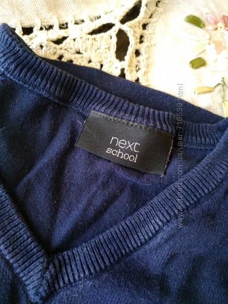 Фото 1-5. Свитерок Next, темно-синего цвета. Состав 82% котон, 18% нейлон. Без дыр и пятен, совсем чуть-чуть выстирался цвет. Замеры: ширина по груди 36 см длина по спинке 43.5 см длина рукава от горловины 46 см Цена 30 грн.