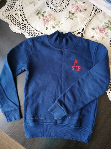Фото 6-8. Утепленный свитшот гольфик. Цвет темно-синий. Состав 96% котон, 4% лайкра. Без недостатков. Замеры: ширина 34 см длина 43.5 см рукав от плеча 43 см плечи 30 см Цена 30 грн.