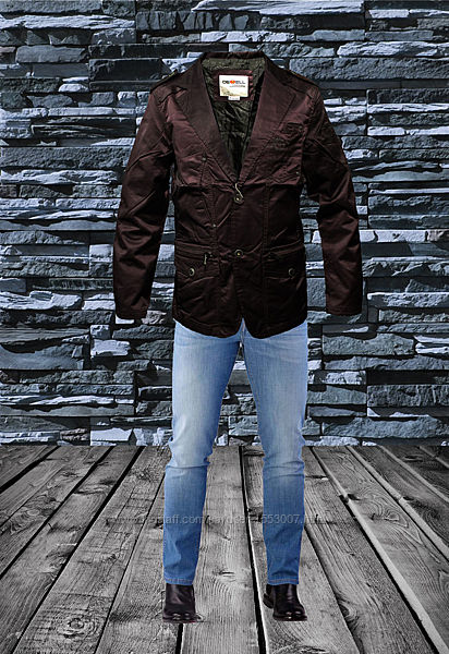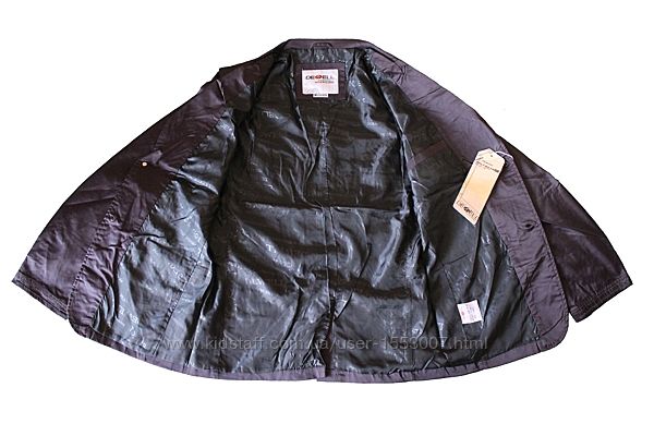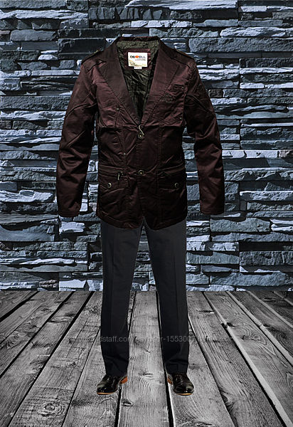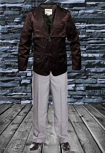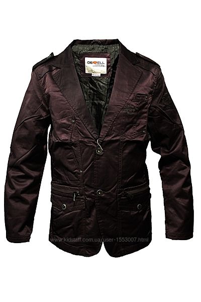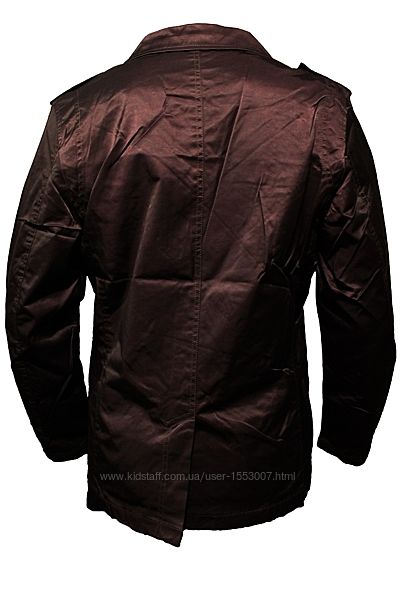 Новий, піджак/тренч вишневого (M, L, XL) та чорного (L, XL) кольору з бірками, етикетками, упаковкою. Склад тканини - 100% поліестр. Тканина переливається та блищить, залежно від освтлення: від темно-димчатого(на не освітлених ділянках) до яскраво-насиченого вишневого кольору.Гудзики металеві(збірні з жесті, не литі).