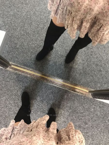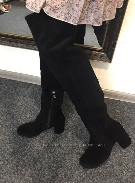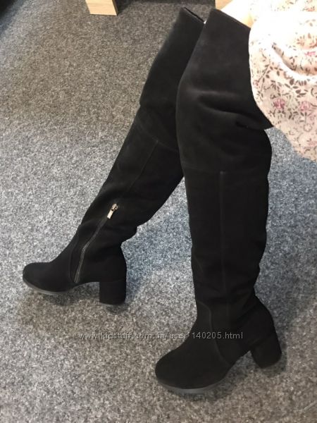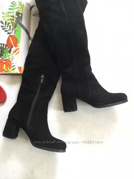 Подробное описание: РаспродаШикарные замшевые чёрные высокие сапоги ботфорты на каблуке 36-40р