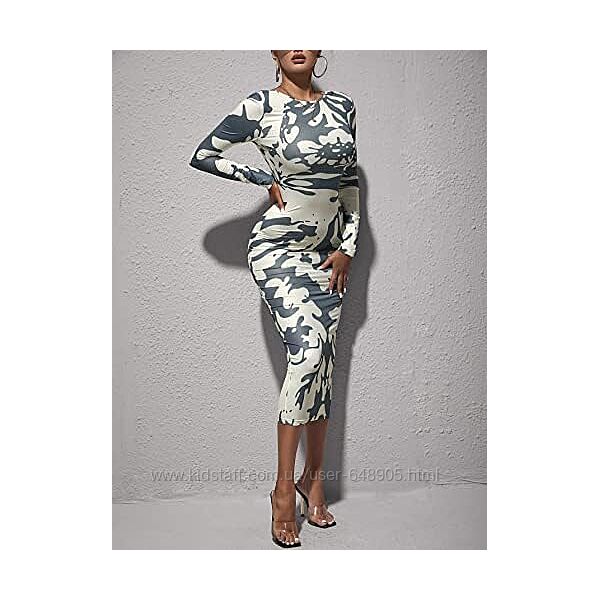 Эффектное облегающее платье миди от Shein. Детали: эластичная ткань, без застежки, голубое декольте на спине. Новое с биркой.*