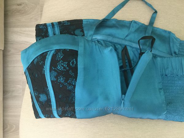 Корсет Bebe оригинал, размер M. Очень качественный и дорогой корсет, сбоку змейка(фото), на шее тесьма. На синем атласе чёрные кружева- смотрится очень секси и дорого.