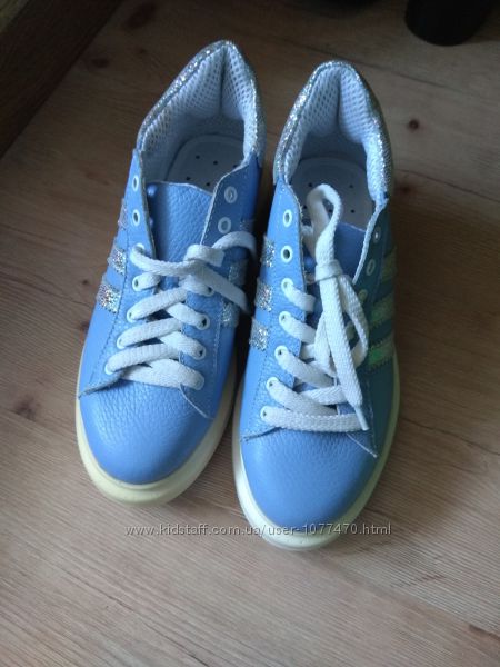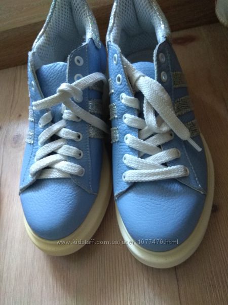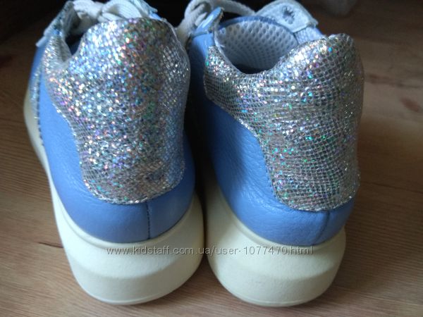 Кроссовки женские натуральная кожа 36-37 р голубые голографик