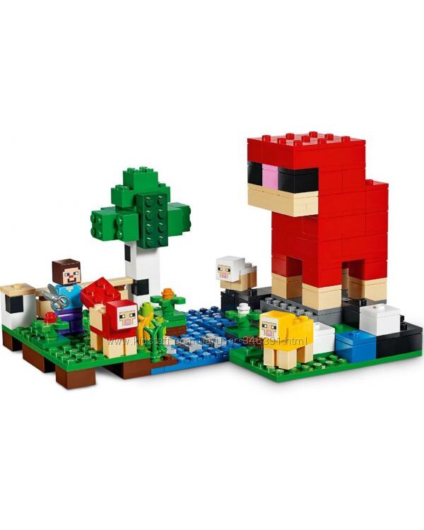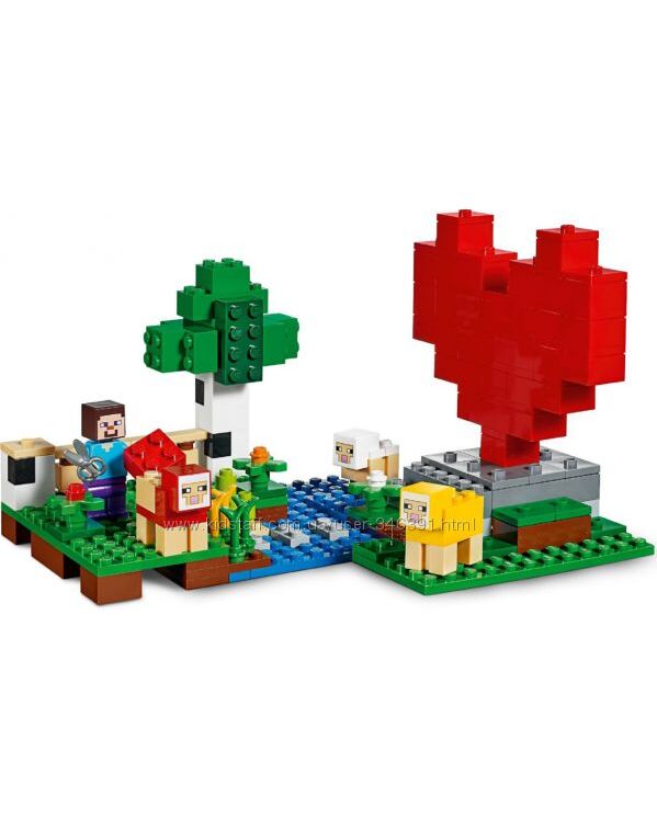 Бери в руки ножницы и отправляйся работать на Шерстяную ферму. Здесь растёт милая берёзка, а за забором течёт ручей, обложенный камнями. Выращивай пшеницу, чтобы кормить домашний скот, и цветы, из которых можно изготовить красители для шерсти. Выгуливай ягненка Minecraft ™, стриги крашеных овец и собирай шерсть. Включи воображение и собери большое сердце, овцу, попугая или другое животное для своей фермы! Собирай новые приключения с удивительными наборами LEGO ® Minecraft !