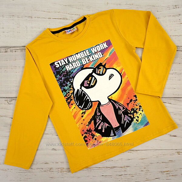 Трикотажні легенькі реглани Snoopy, виробник Туреччина, тканина 100 котон, йдуть в розмір.128/134см (8-9р) довж 50см, шир 36см жовта