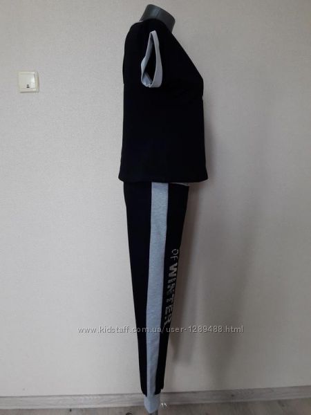 Спорт шик! Молодежный эффектный,яркий костюм:футболка и брюкиФутболка-укороченная модель,оверсайз,свободного кроя,без рукавов(без плечевого шва с рукавом),круглая линия горловины в форме небольшой "лодочки".Брюки-бедровки,укороченные,с заниженной посадкой,на широких манжетах.С широким удобным поясом(внутри резинка).Комплект декорирован отделкой из ткани на рукавах футболки,по краю горловины,брюках по бокам и серебристой накаткой.Красивое,яркое и эффектное сочетание трендовых в этом сезоне цветов!