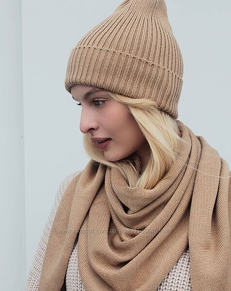 Стильний комплект двійка: Шапка гарбузик + Снуд на два обороти