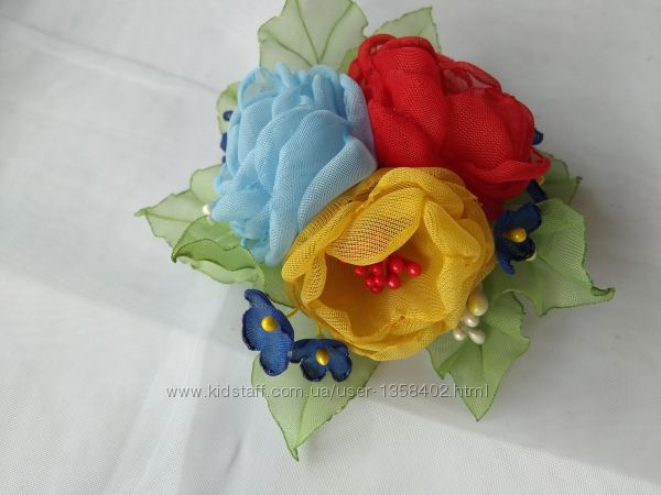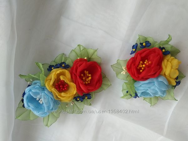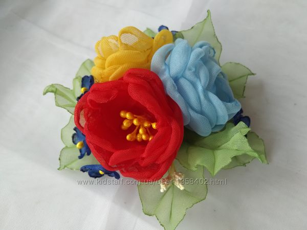 Подробное описание: Заколка, резинкс в Украинском стиле, цветы из шифона