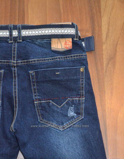 2. Джинсы-узкачи для мальчиков подростков, на поясе есть резинка-фиксатор. Очень хорошая модель, на детках сидят отлично. Ремень в подарок.