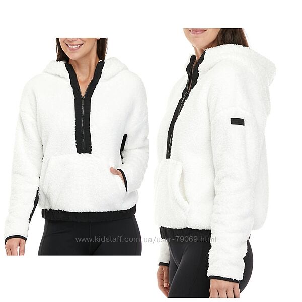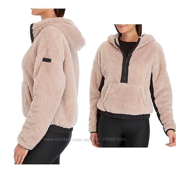 Уютная толстовка из плюшевой шерпы Спереди застежка- молния 1/4 Карман кенгуру спереди Капюшон Нашивка на рукаве с логотипом Состав: 100% полиэстер,вставки – 100% нейлон Уход: можно стирать в стиральной машине в прохладной воде