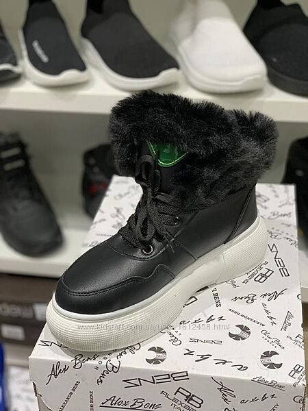 ЧЕРНЫЕ Тёплые зимние кроссовки, платформа 5,5 см, эко кожа. Очень тёплые.