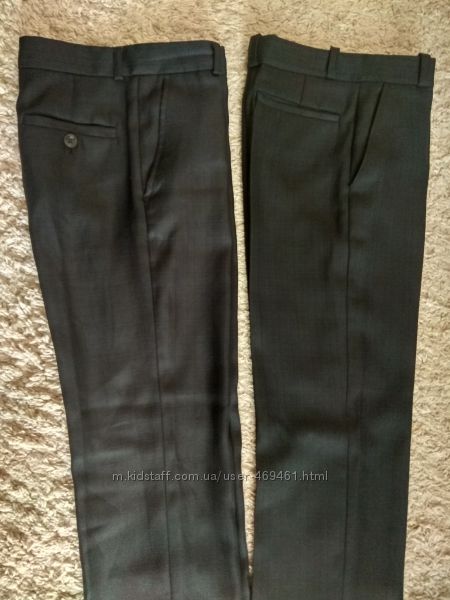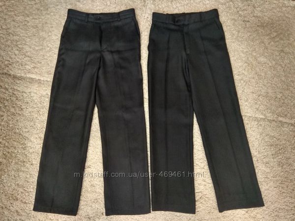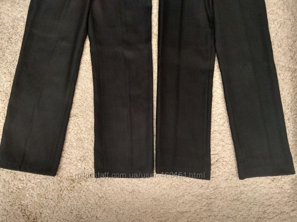 Продам школьные брюки черного цвета в хорошем состоянии.1) слева, длина 84 см, пояс 30 см, бедра 38 см по линии матни. На фото поперечная линия сгиба от вешалки осталась, не выглаживала.