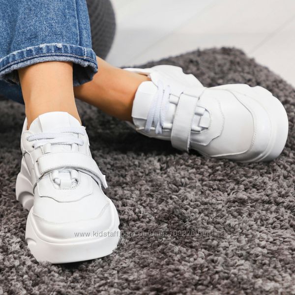 Подробное описание: Кроссовки, натуральная кожа, на липучке, белые