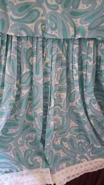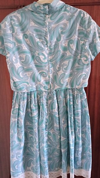 Продам платье голубого цвета с принтом и кружевом по низу.Состояние очень хорошее,следов носки нет.Платье из натуральной ткани,очень воздушное и легкое,есть пояс из такой же ткани.Сзади застежка молния и два крючка.Платье шилось на заказ на р.46Замеры