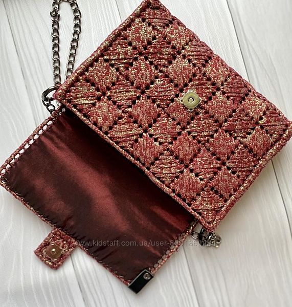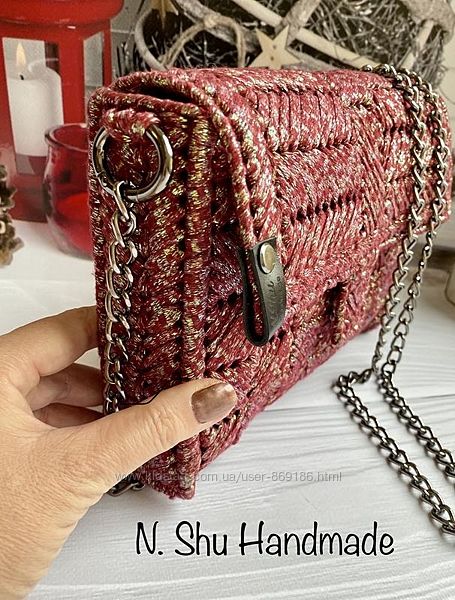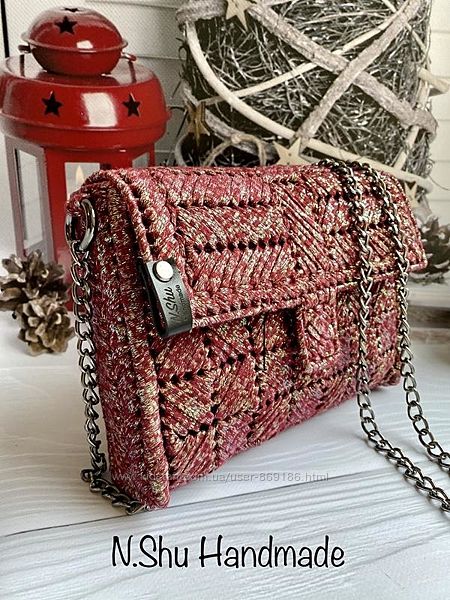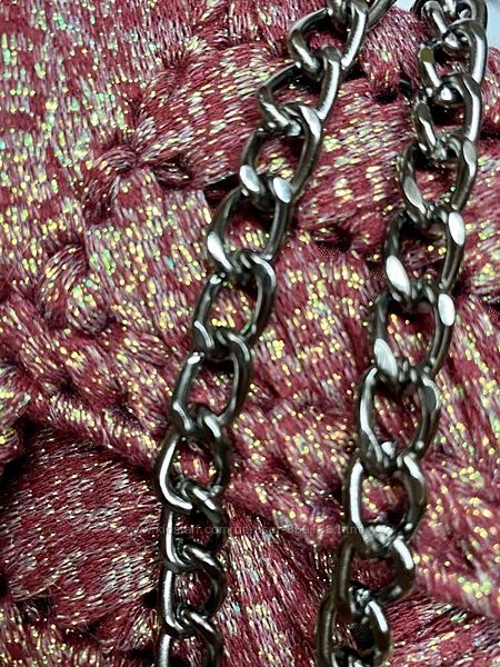 Сумочка-кроссбоди из невероятной пряжи цвета марсала с голографической нитью.Прекрасно держит форму, довольна вместительна.
