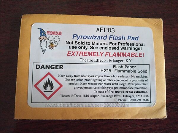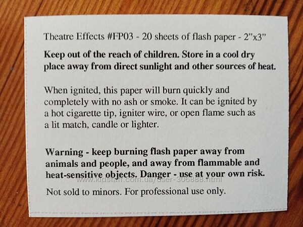 Флеш-папір може бути небезпечним. Тримайте його подалі від вогню або інших джерел тепла, а також в недоступному для дітей місці.