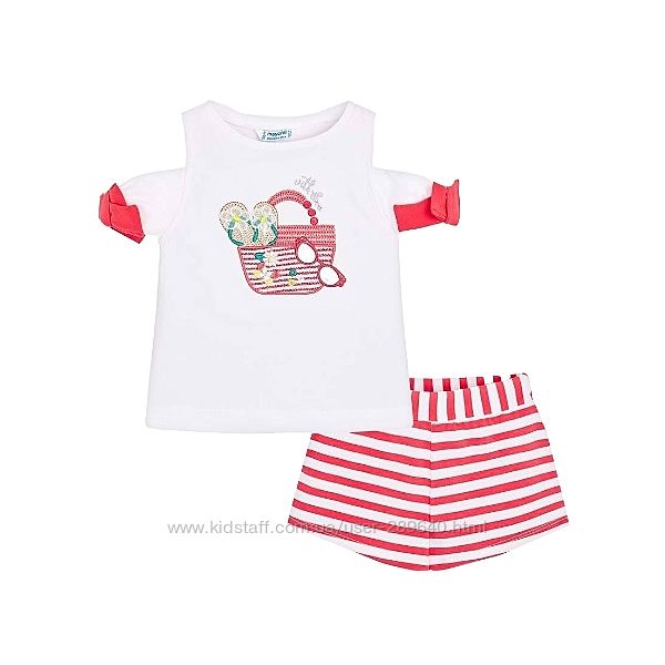 Яркий летний комплект, костюм от испанского бренда Mayoral, состоящий из 2-х предметов (футболка и шорты). В наличии:-- красно-розовый -- 104 см на 4 года; 110 см на 5 лет; 116 см на 6 лет; 122 см на 7 лет; 128 см на 8 лет; 134 см на 9 лет;