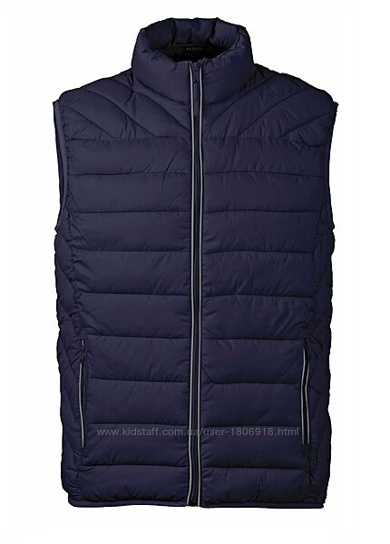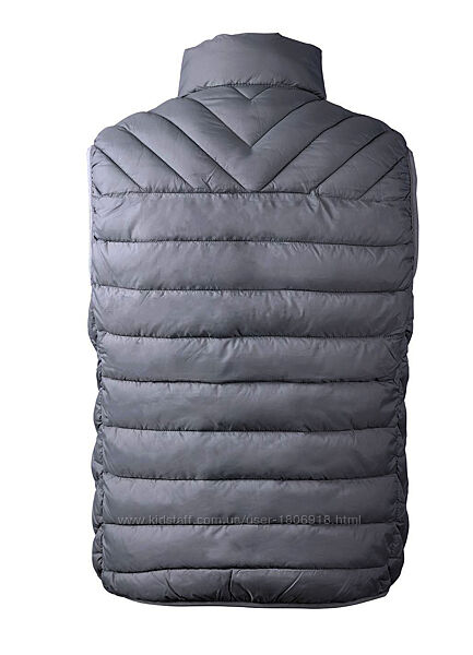 Матеріал виготовлення - 100% нейлон, набивка з поліестеру з ефектом пера, всередині підкладка виготовлена з нейлону сірого кольору. Товщина жилета 1,5-2 см.