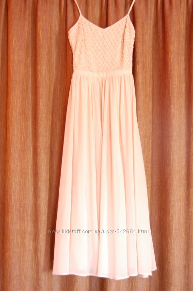 Шикарное нарядное платье-макси, на бретельках. Размер S, но подойдет и на М, ориентируйтесь на замеры.Ткань полиэстер, на подкладке, красивый бежево-розоватый цвет. Верх расшит бисером. Состояние идеальное, одевалось 1 раз. Подойдет на любое торжественное мероприятие. Очень красиво смотрится на фигуре. Пояс 34 см (тянется до 35), ПОГ 44см (тянется до 45), длина юбки от пояса 97 см, длина шлеек регулируется, сбоку молния. Пр-во Индия.Другие объявления продавца