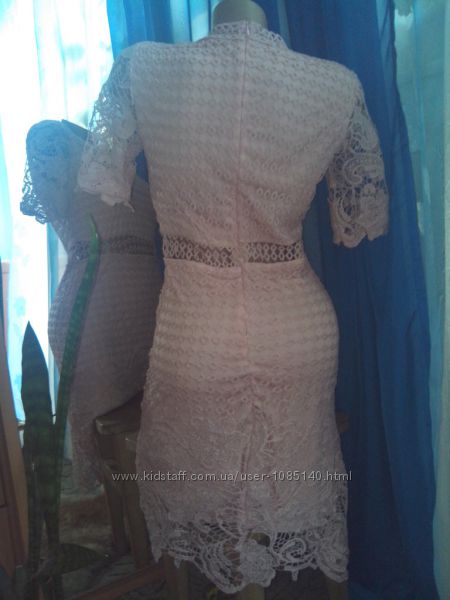 Фото 5-9 Платье-миди вечернее кружевное тёмно-пудрового цвета Фантастически-шикарное кружевное платье-миди тёмно-пудрового цвета с короткими прямыми рукавчиками, аккуратным круглым вырезом горловины спереди, область талии на просвечивающемся пояске, по центру спинки длинная незаметная молния, прямого приталеного фасона. Смотрится просто потрясающе женственно, фантастически-изысканно, дорого и нарядно!