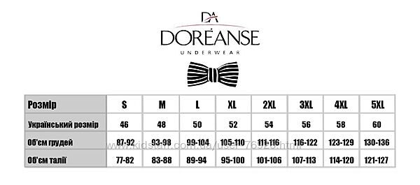 Воспользуйтесь размерной сеткой ТМ Doreanse чтобы правильно подобрать размер.