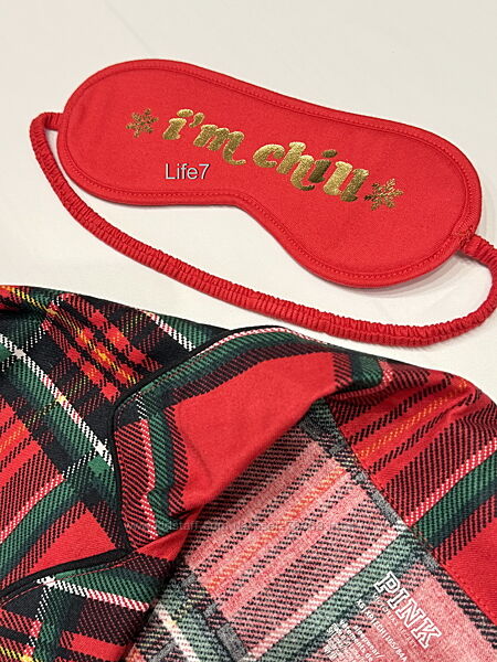 Комплект пижамы: рубашка с длинным рукавом, шортами и маской для сна.