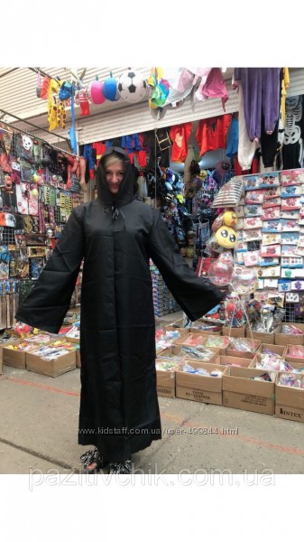 Карнавальный плащ чумного доктора с капюшоном и рукавами черного цвета, и универсального размера взрослым и подросткам. Карнавальный плащ чумного доктора черного цвета с капюшоном идеально использовать для создания разных карнавальных костюмированных образов, популярных героев фильма трилогии " Звездные Войны" - Джедаи. Карнавальный плащ с капюшоном и рукавами отлично подходит на Хэллоуин, костюм смерти, костюм монаха средневековья, мантия, плащ накидка, плащ готов, плащ чумного доктора или плащ доктора чума. Универсальный размер на рост от 160 см и до 180 см, размер в плечах от 44 и до 54.Также в продаже есть Плащи на рост выше 180 см. Цена 1195 грн.