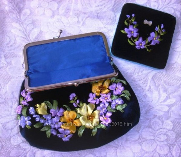 Косметичка изготовлена из чёрного велюра с фермуаром, украшена вышивкой лентами, подкладка атласная.Размер 15*20. Зеркальце- 7см. Такой набор любой девушке придётся по вкусу.Другие объявления продавца