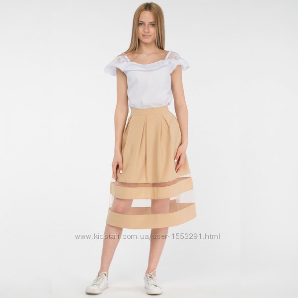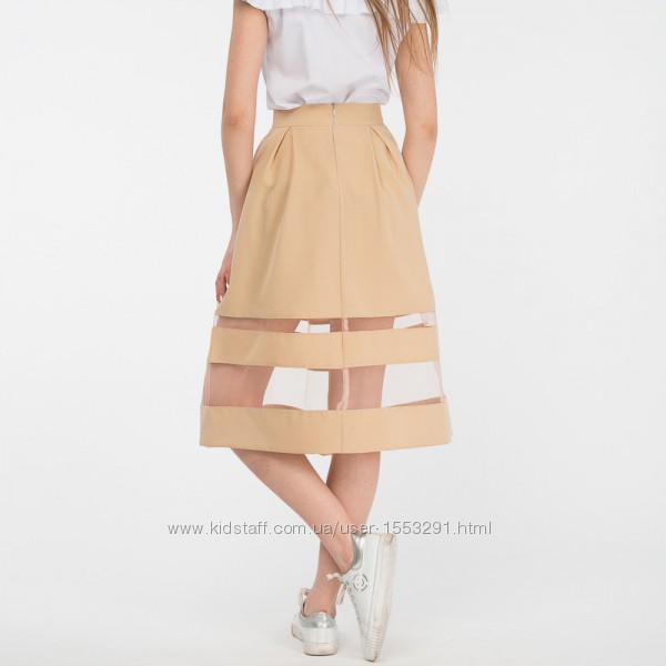 Юбка Лора бежевого цвета, вставка евро сетки , С/м размер