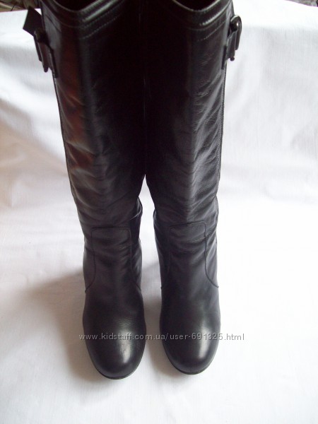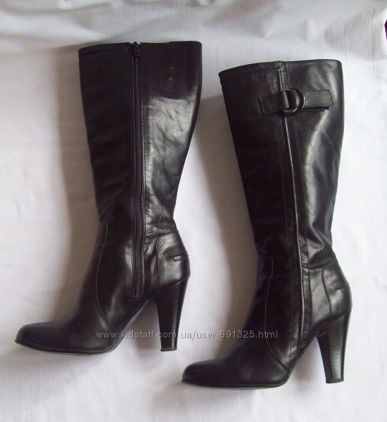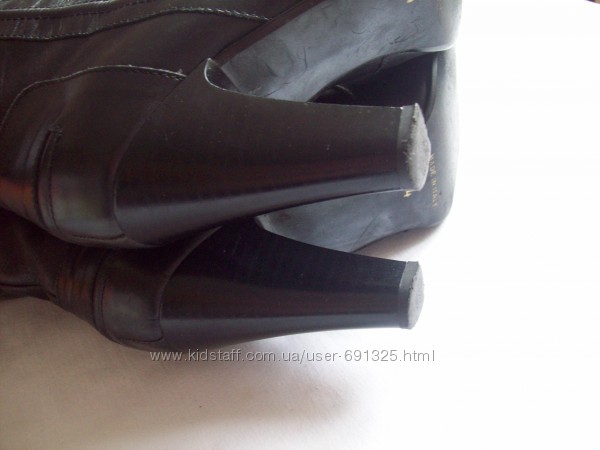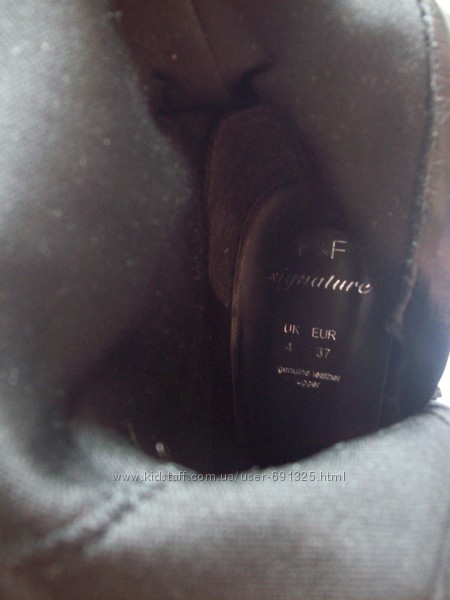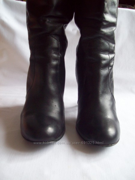 Предлагаю черные демисезонные сапоги из натуральной кожи, от F&F . Внутри тонкий поролон. Б/у пару раз , состояние отличное, для меня высоковат каблук.Размер указан 4/37, длина стельки внутри 24,5 см. Высота от пола 43 см, из них каблук 9 см. Ширина щиколотки 12 см, ширина верха 18+1,5 см.