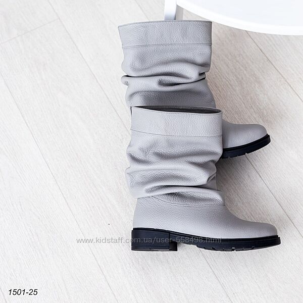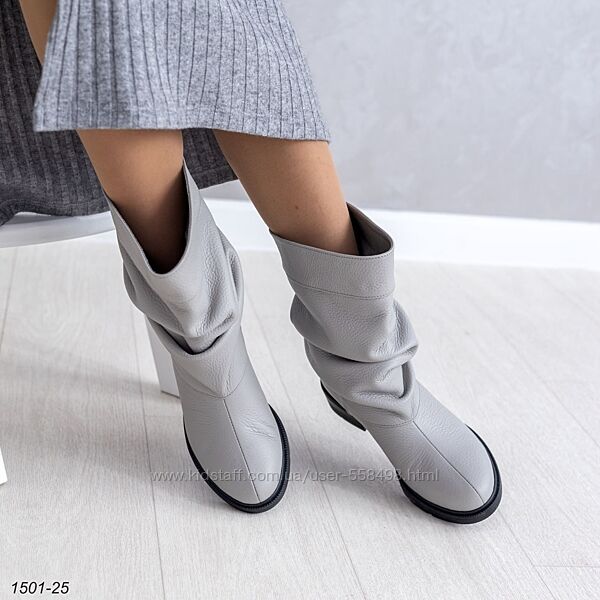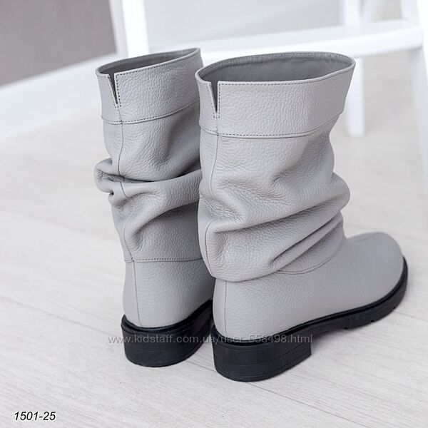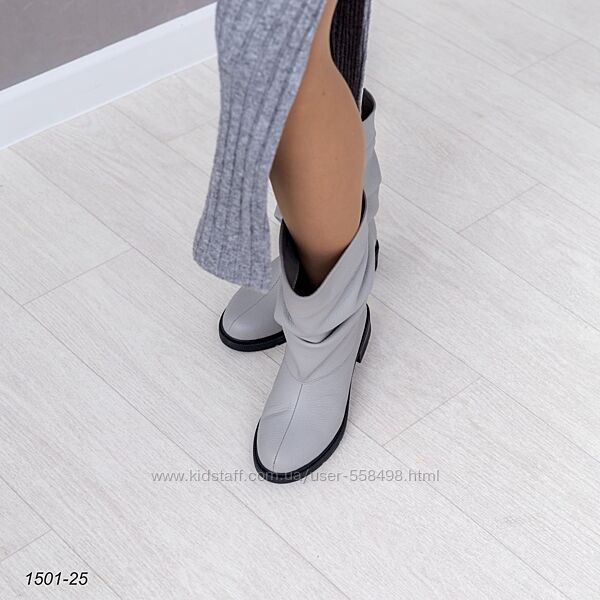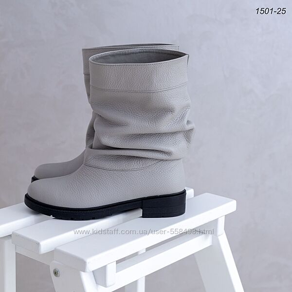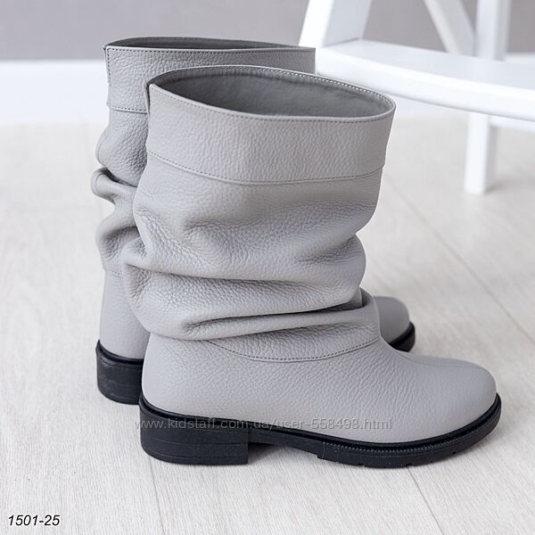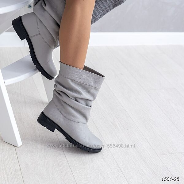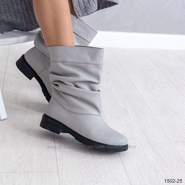Подробное описание: Шкіряні жіночі сірі демісезонні чобітки