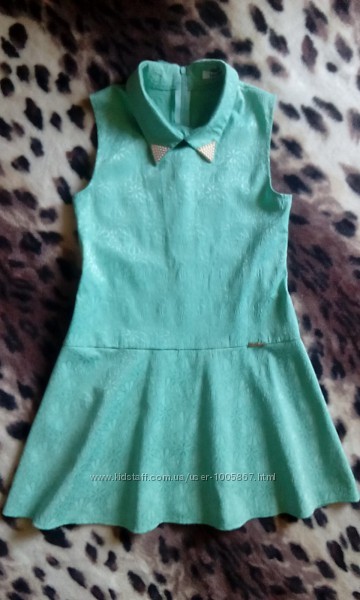 Платье ТМ Мevis мятный б. у. на рост по бирке 146