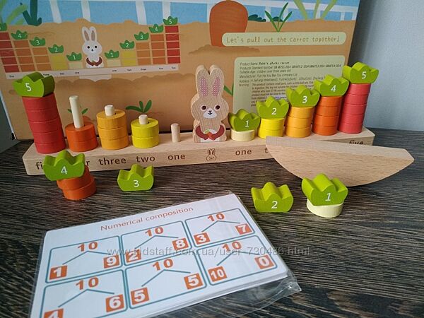 Подробное описание: Деревянный балансир Зайчик пирамидка счет, состав числа. В наличии.